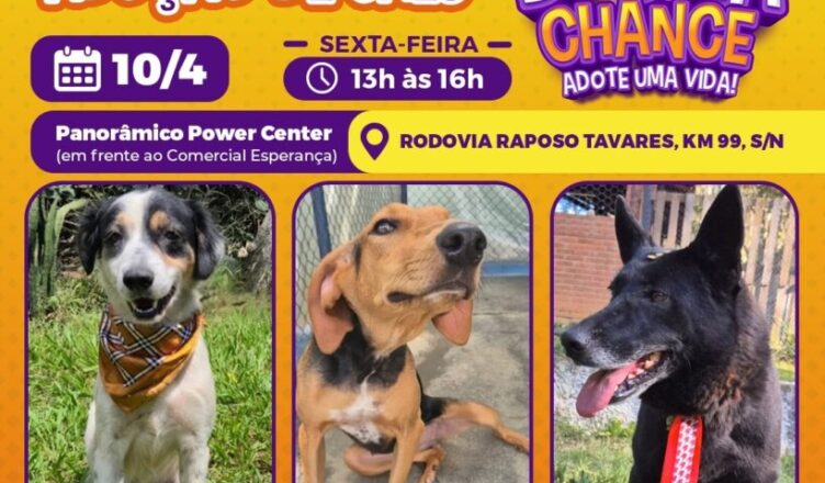 A Prefeitura de Sorocaba, por meio da Secretaria do Meio Ambiente, Proteção e Bem-Estar Animal (Sema), realizará, nesta sexta-feira (10), das 13h às 16h, a feirinha de adoção de cães do Canil Municipal no Panorâmico Power Center, em frente ao Comercial Esperança, na Rodovia Raposo Tavares, Km 99, s/n.